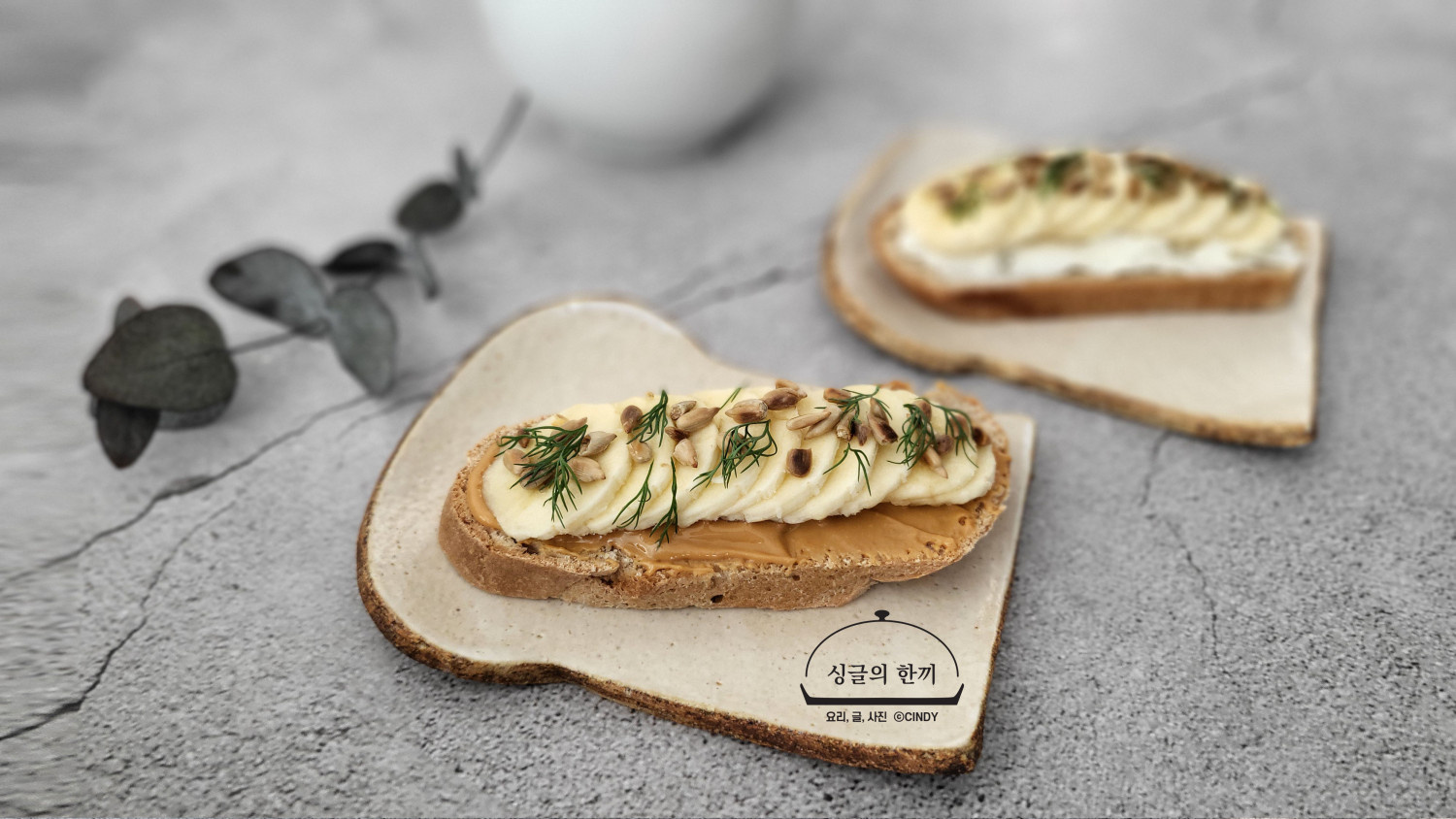든든하고 건강한 식단: 리코타 & 피넛버터 호밀 바나나 오픈 샌드위치 레시피