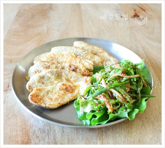 겉바속촉 닭가슴살 육전: 새콤달콤 매콤 겉절이 곁들임