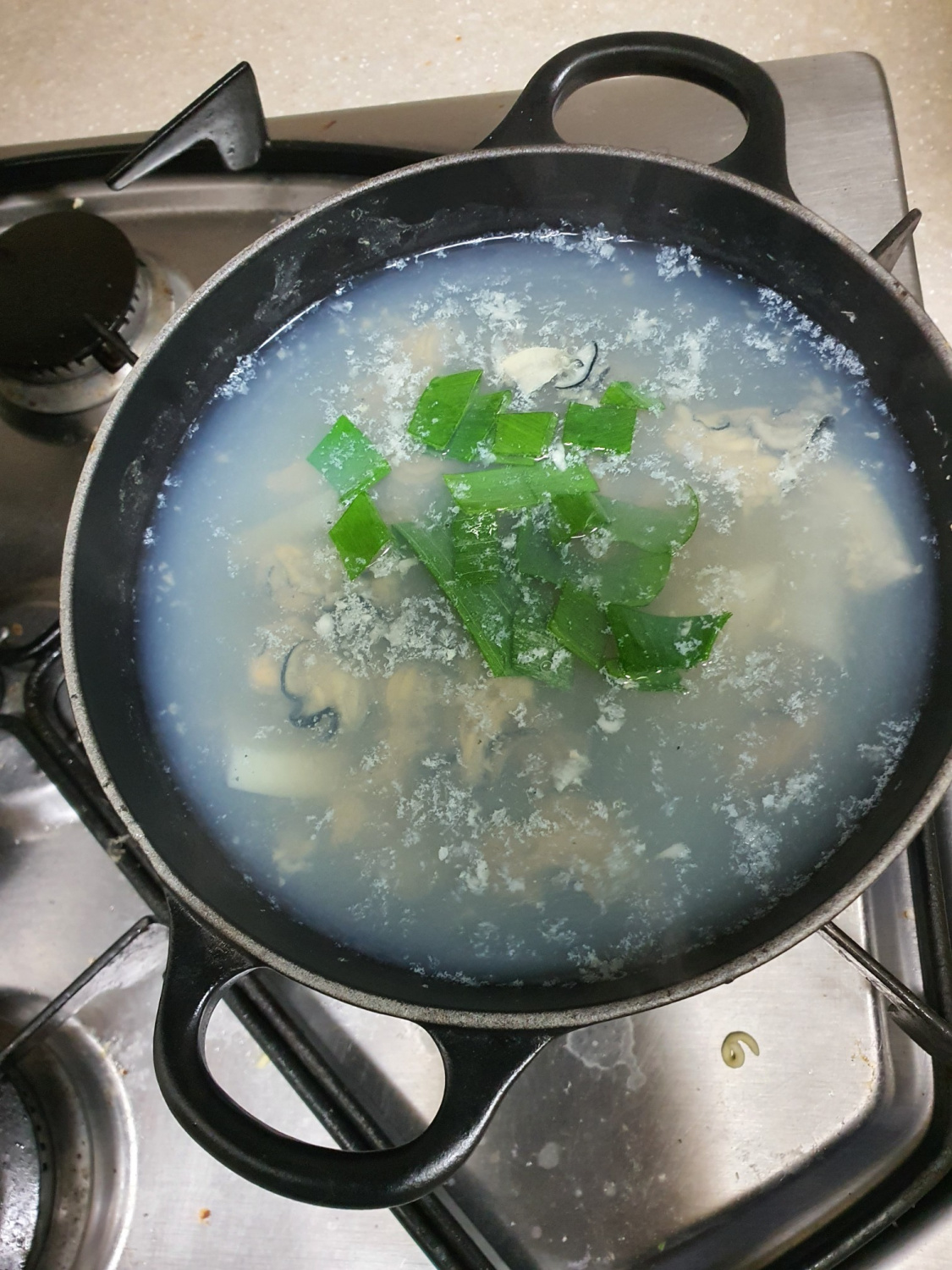 굴을 넣고 국물이 다시 끓어오르면, 굴에서 나오는 거품이나 불순물이 국물을 탁하게 만들 수 있으니 뜰채나 국자를 이용해 조심스럽게 걷어내 주세요. 이렇게 불순물을 제거하면 맑고 깨끗한 굴국을 즐길 수 있습니다.