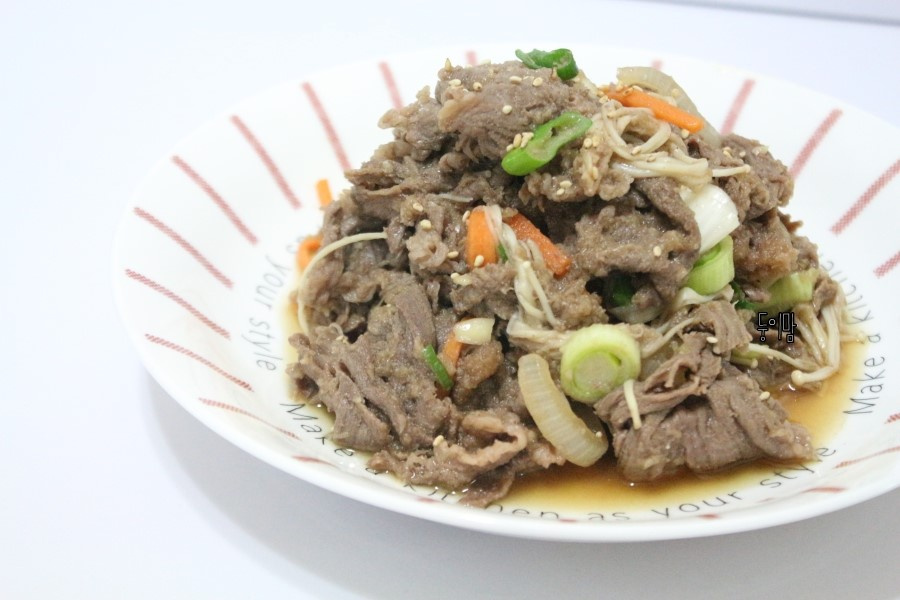 모든 재료가 어우러져 국물이 자박자박하게 졸아들면 완성입니다! 불고기는 너무 오래 볶으면 고기가 질겨질 수 있으니, 센 불에서 빠르게 볶아내 단맛과 감칠맛을 살리는 것이 포인트예요. 따뜻한 밥 위에 올려 먹으면 정말 꿀맛이랍니다. 맛있게 즐기세요!