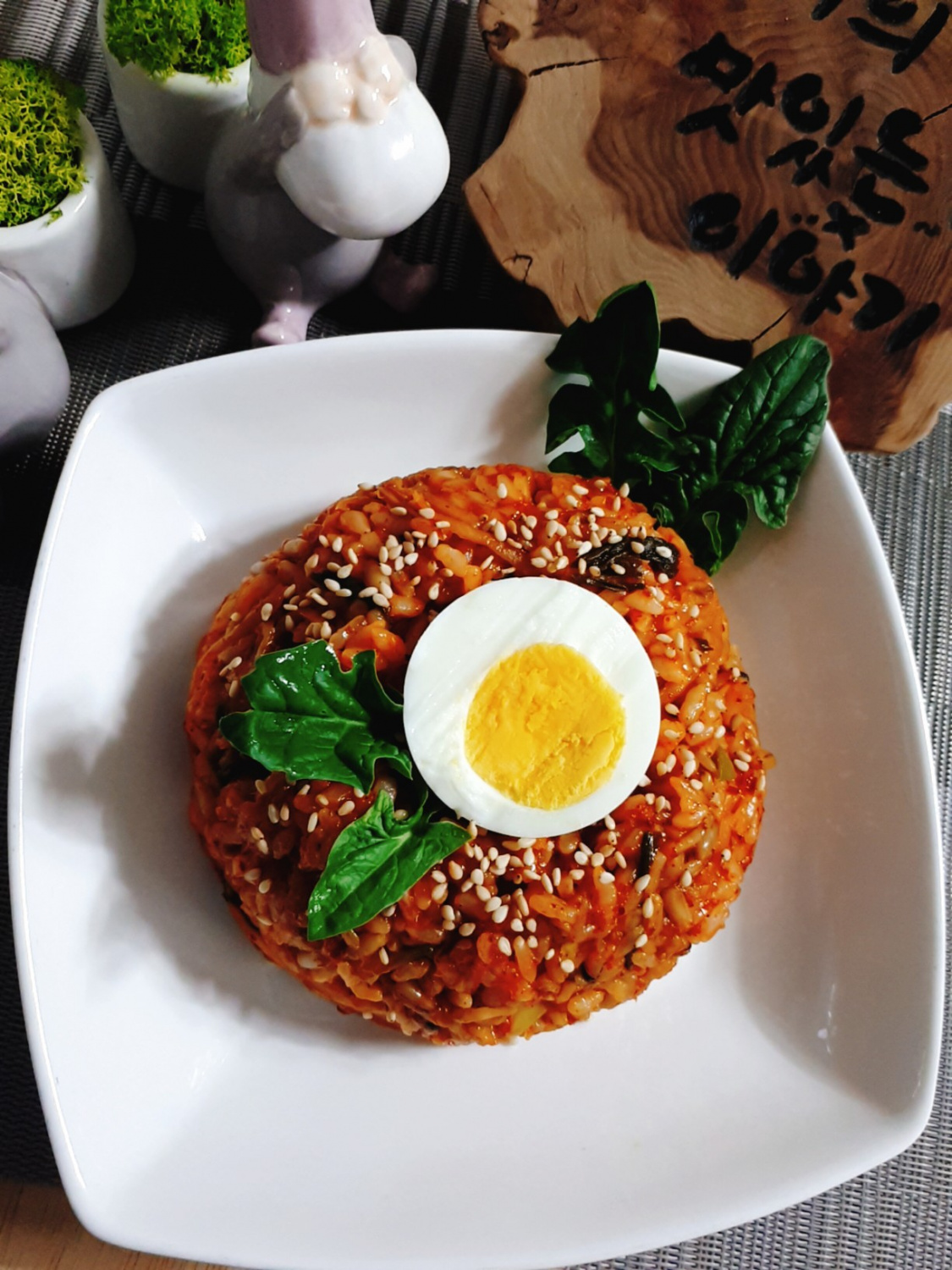 저는 미리 삶아둔 계란이 있어서 볶음밥 위에 올리고, 보기 좋게 시금치 잎으로 장식해보았습니다. 아이가 예쁘다며 정말 좋아하네요! 삶은 계란 대신 반숙 계란 프라이를 해서 올려주셔도 정말 맛있답니다. 근사한 한 끼, 맛있게 즐기세요!