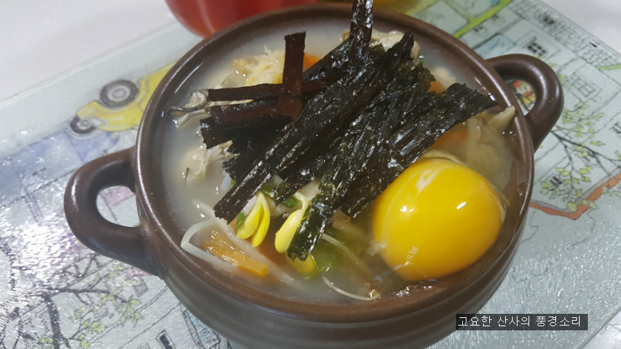 마지막으로, 뚝배기 위에 신선한 달걀 1개를 그대로 깨뜨려 올리고, 솔솔 풍미를 더해줄 김가루를 약간 뿌려주면 보기에도 좋고 맛도 훌륭한 알토란 굴국밥이 완성됩니다. 뜨거울 때 바로 드시면 더욱 맛있어요!