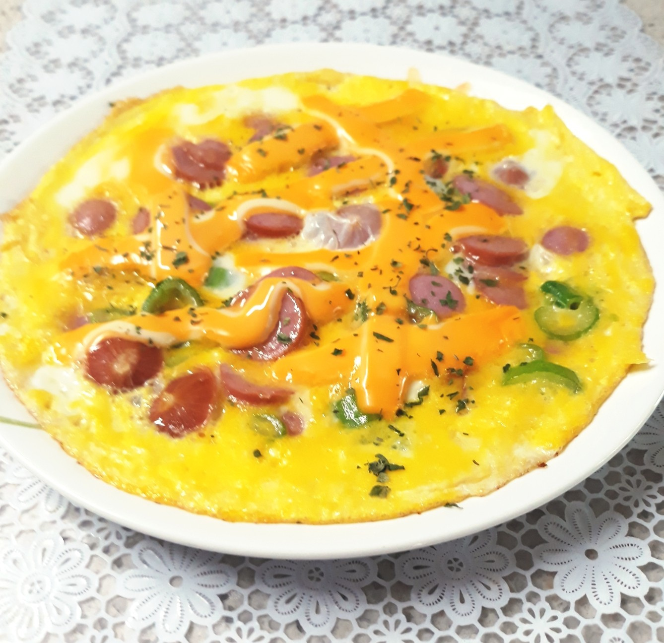 전이 다 익으면, 취향에 따라 파슬리 가루를 솔솔 뿌려 시각적인 맛을 더해주세요. 완성된 소시지 달걀 치즈전을 예쁜 접시에 조심스럽게 옮겨 담으면, 근사한 한 끼 식사 또는 훌륭한 안주가 완성됩니다.