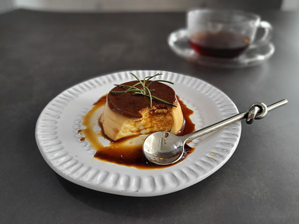 몇 시간 후, 푸딩이 완전히 차갑게 굳으면 용기 그대로 떠서 드시거나, 접시에 옮겨 담아 즐길 수 있습니다. 푸딩 용기 옆면에 얇은 칼을 살짝 넣어 가장자리를 분리한 후, 접시를 덮고 용기를 뒤집으면 깔끔하게 푸딩을 접시에 옮길 수 있습니다.