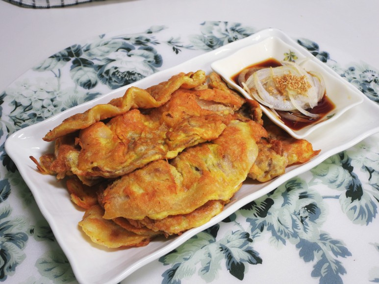 먹을 때는 대패 육전을 간장 소스에 콕 찍어 먹거나, 신선한 양파를 듬뿍 올려 함께 싸서 드셔보세요. 알싸한 양파와 새콤달콤한 소스가 삼겹살의 풍미를 한층 끌어올리면서, 기름진 맛을 개운하게 잡아주어 질릴 틈 없이 계속 먹게 될 거예요.