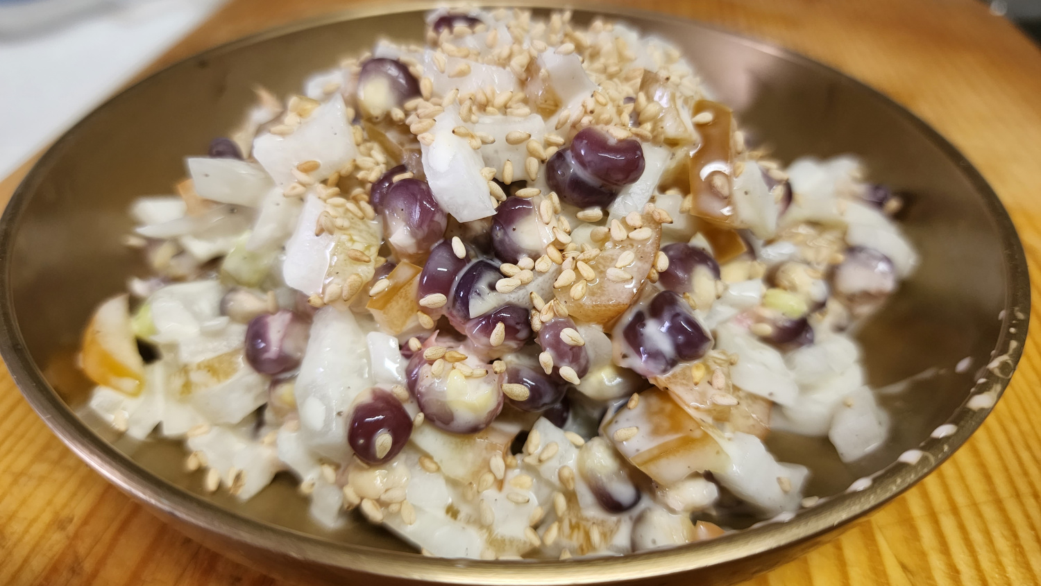 준비된 옥수수와 채소가 담긴 볼에 만들어둔 드레싱을 모두 붓고, 옥수수 알갱이나 채소가 뭉치지 않도록 주걱이나 숟가락으로 살살 버무려주세요. 모든 재료에 드레싱이 골고루 코팅되도록 부드럽게 섞어주는 것이 중요합니다. 마지막으로 고소한 풍미와 시각적인 효과를 더해줄 통깨를 솔솔 뿌려주면, 류수영의 옥수수 샐러드 완성입니다! 간편하지만 맛은 절대 간편하지 않은, 매력적인 샐러드를 즐겨보세요.