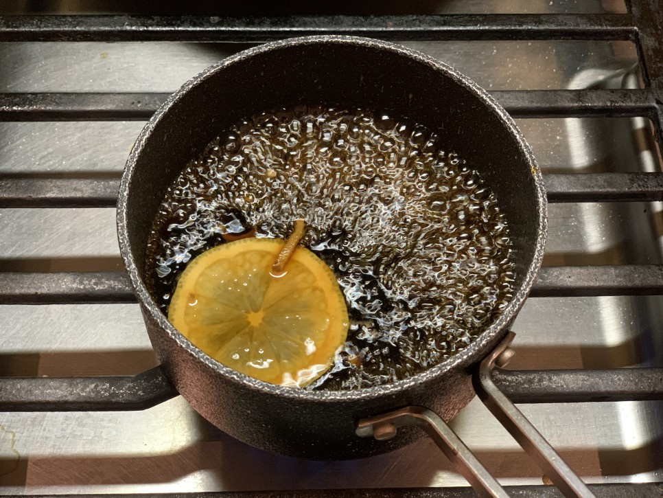 재료를 모두 넣은 냄비를 중불에 올려 끓이기 시작합니다. 소스가 끓어오르면 불을 약불로 줄이고, 걸쭉해지기 시작할 때까지 약 3-5분간 더 졸여주세요. 불을 끄기 직전에 레몬 1조각을 넣고 살짝만 더 섞은 후 불을 꺼주면, 상큼한 향이 더해져 더욱 맛있는 데리야끼 소스가 완성됩니다.