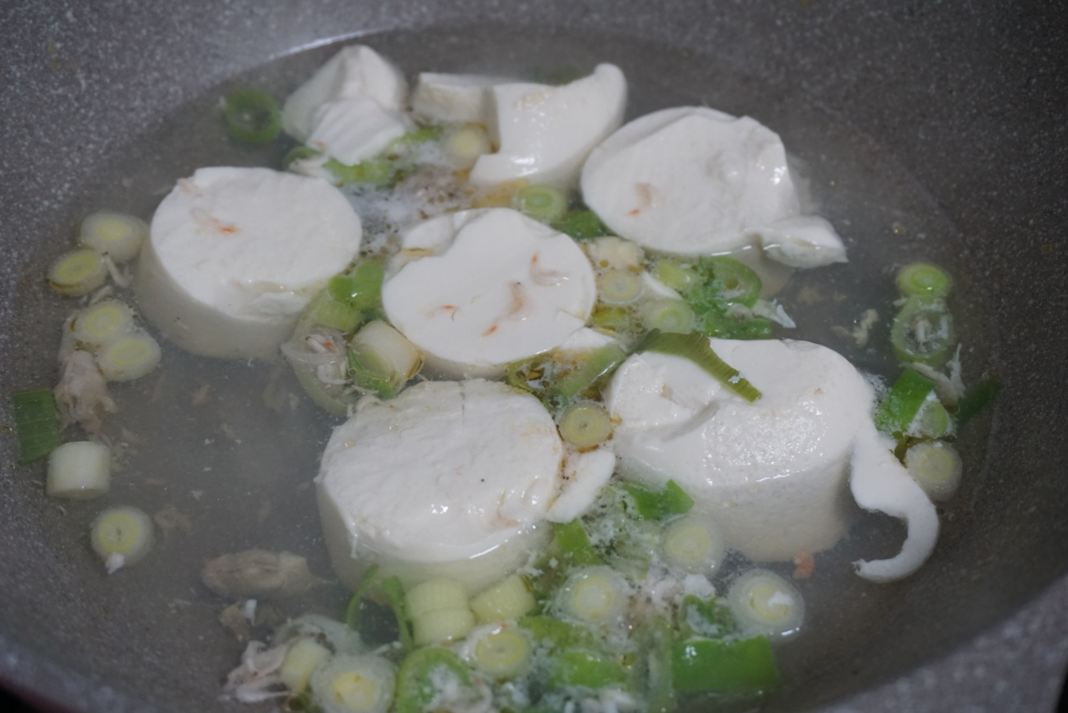 백합 육수가 우러나온 냄비에 큼직하게 썬 순두부를 부드럽게 넣어주세요. 덩어리째 넣어도 좋고, 숟가락으로 살짝 떠 넣어도 좋습니다. 그리고 앞서 발라둔 신선한 조갯살을 함께 넣고 순두부가 따뜻해질 정도로만 살짝 끓여줍니다. 순두부가 너무 오래 끓으면 뭉개질 수 있으니 주의해주세요.