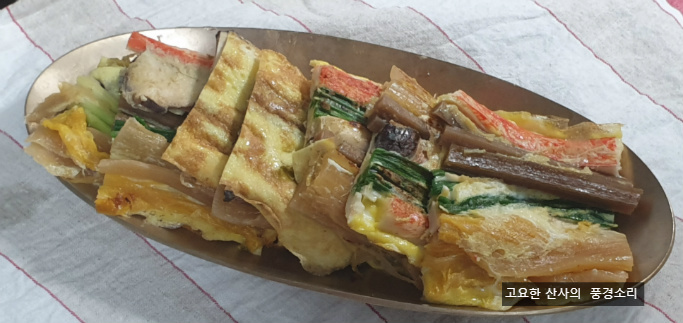 다 익은 꼬치산적은 김발이나 깨끗한 도마 위에 올려 한 김 식혀줍니다. 한 김 식히면서 모양이 더 단단하게 잡힙니다. 먹기 좋은 크기(약 2-3cm)로 썰어주면 맛있는 꼬치산적이 완성됩니다. 따뜻할 때 드셔도 좋고, 식혀서 차례상에 올리셔도 좋습니다.
