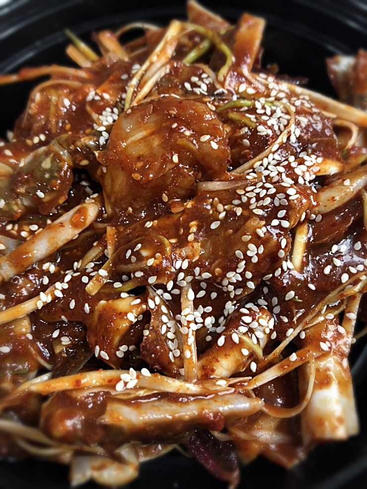 매콤, 달콤, 짭쪼름한 양념과 담백하고 신선한 게살의 조화가 일품인 ‘밥도둑’ 양념게장 완성입니다! 냉동 상태에서 밑간 후 30분 냉장 숙성시키고, 양념에 버무리는 이 과정이 바로 제가 자신 있게 선보이는 ‘황금 레시피’랍니다. 맛있게 즐기세요!
