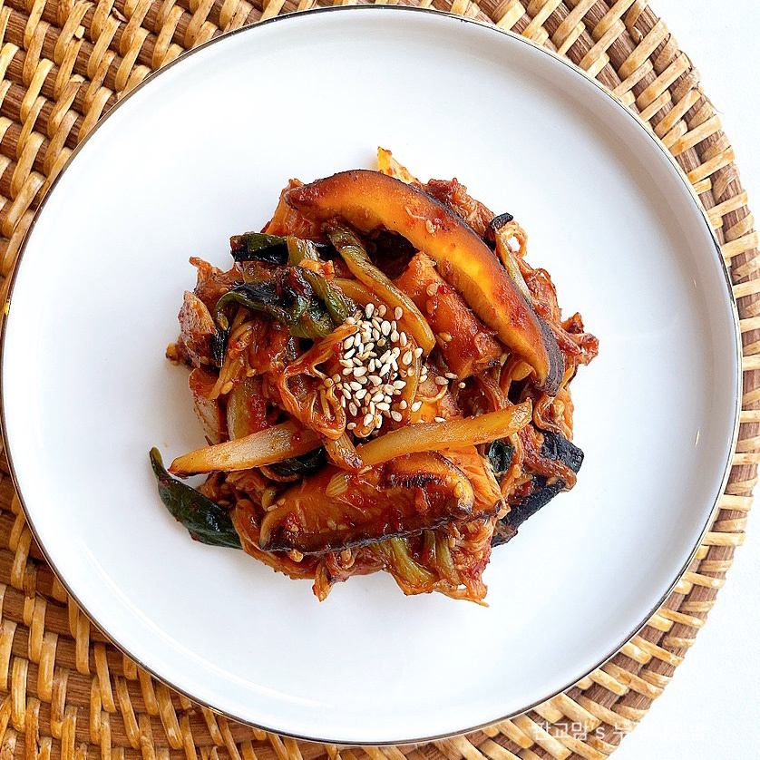 이 요리는 고기를 넣지 않아도, 도톰하게 썬 표고버섯이 쫄깃한 식감을 더해줘서 전혀 아쉽지 않답니다. 버섯 특유의 풍미와 매콤달콤한 양념이 어우러져 밥반찬으로 정말 훌륭해요.