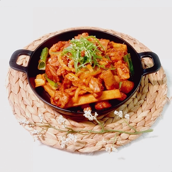 온 가족의 입맛을 사로잡을 매콤달콤한 닭갈비를 집에서 간편하게 만들어 보세요. 푸짐한 닭고기와 신선한 채소, 쫄깃한 떡이 어우러져 근사한 한 끼 식사나 술안주로도 최고입니다.