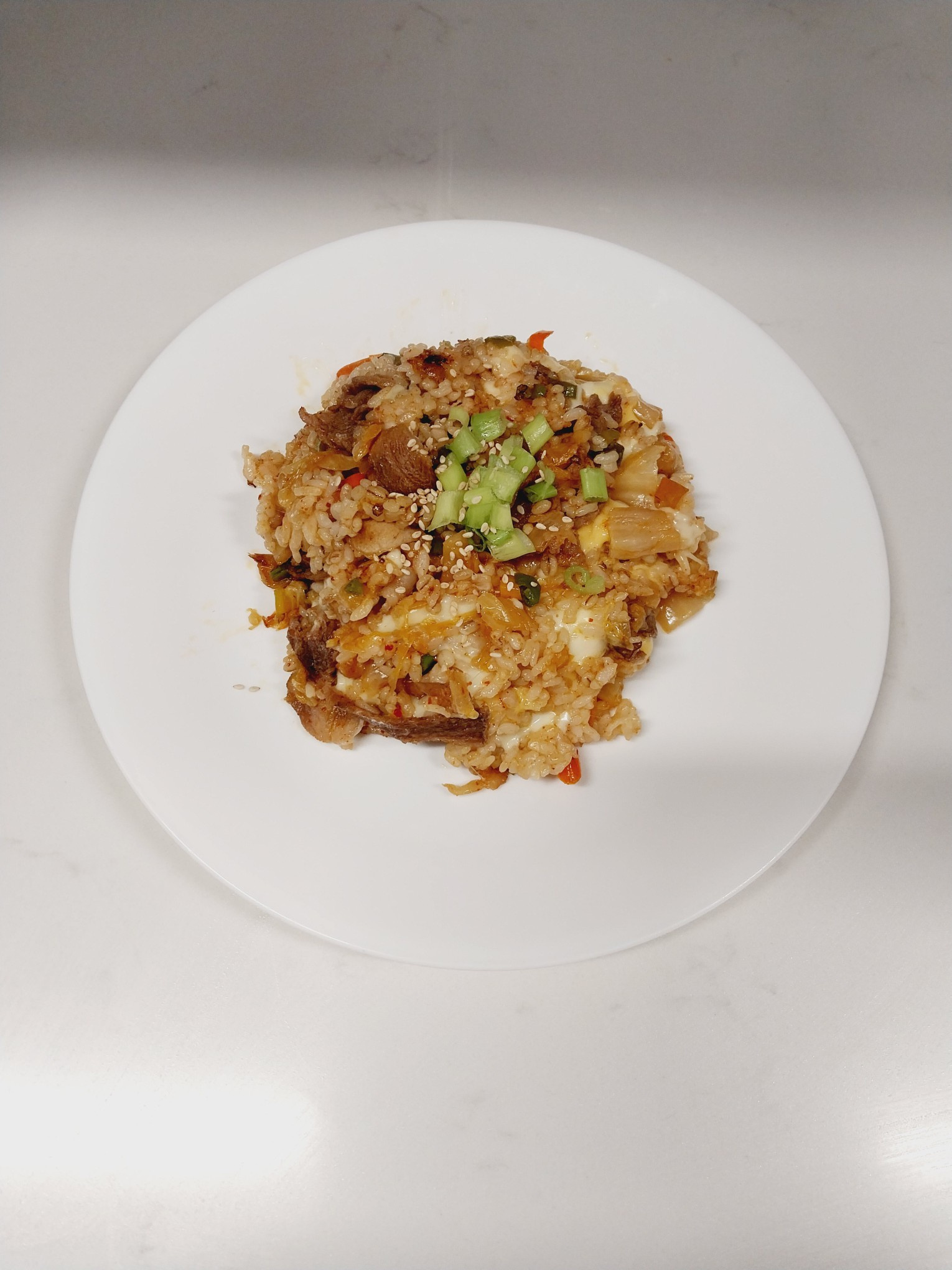 마지막으로 통깨 1 큰술을 솔솔 뿌려 고소함을 더해주세요. 취향에 따라 참기름을 살짝 둘러주면 더욱 풍미 깊은 김치볶음밥을 즐기실 수 있습니다. 맛있게 드세요!