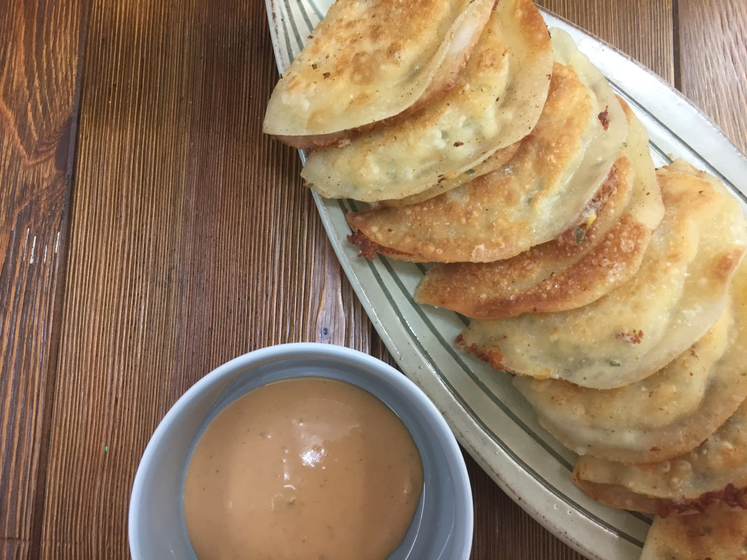 만두피 가장자리를 꼼꼼하게 붙여 모양을 만들어 줍니다. 이때, 만두 속의 치즈가 익으면서 흘러나오지 않도록 만두의 가장자리 부분을 손가락으로 꾹꾹 눌러 단단하게 봉합해 주세요. 만두 모양은 반달 모양이나 둥근 모양 등 자유롭게 만들 수 있습니다. 만두 표면을 납작하게 잘 눌러주면 팬에서 구울 때 더 바삭하게 익힐 수 있습니다.