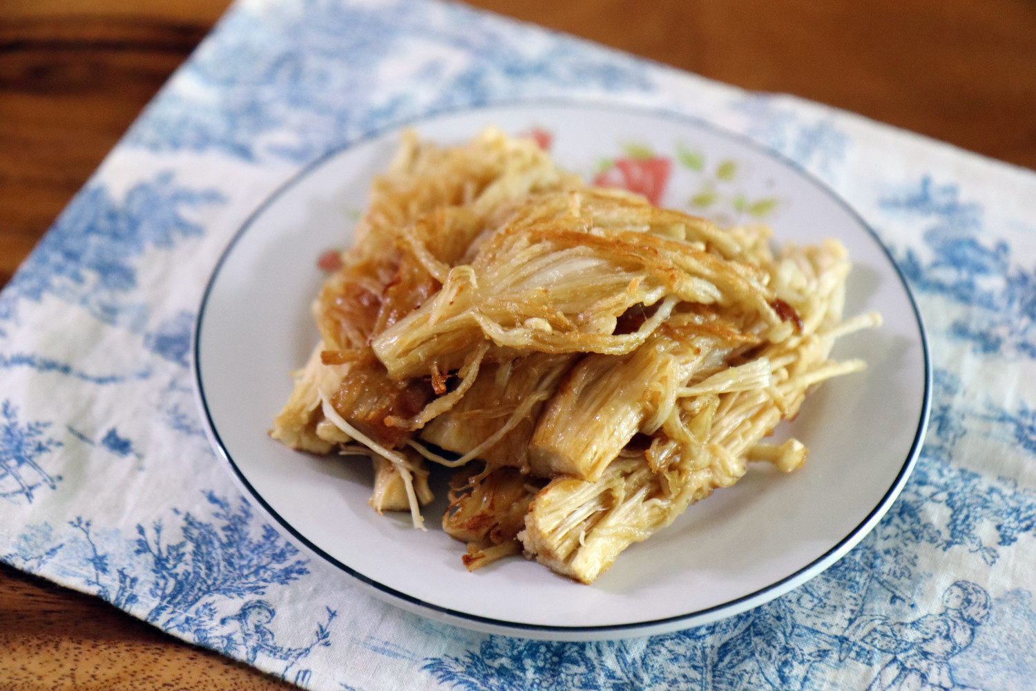 밑동을 제거한 팽이버섯은 손으로 8~9등분으로 살살 찢어주세요. 뭉쳐있는 부분을 잘 풀어주어야 양념이 골고루 배고 익을 때도 더 맛있습니다. 너무 작게 찢지 않도록 주의해주세요.