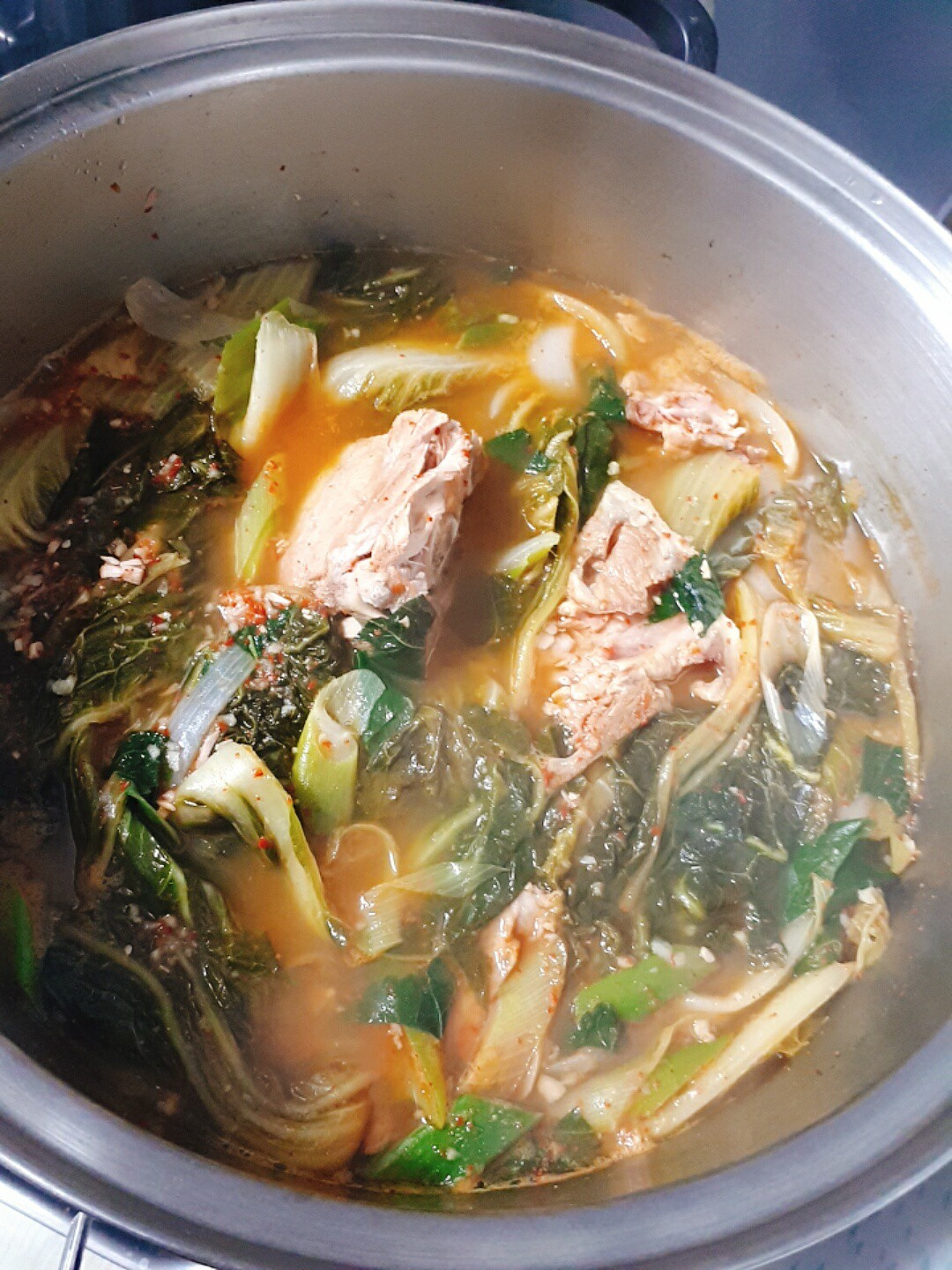배추 우거지와 돼지 등뼈로 만든 푸짐한 해장국