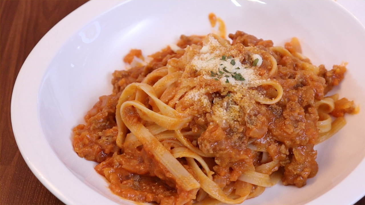 미리 삶아둔 스파게티면 90g을 소스 위에 넣고, 녹은 치즈와 미트소스를 면에 골고루 버무려주세요. 면이 소스로 코팅되도록 부드럽게 섞어주면 맛있는 미트소스 스파게티 완성입니다. 취향에 따라 파슬리 가루 등을 뿌려 장식해도 좋습니다.