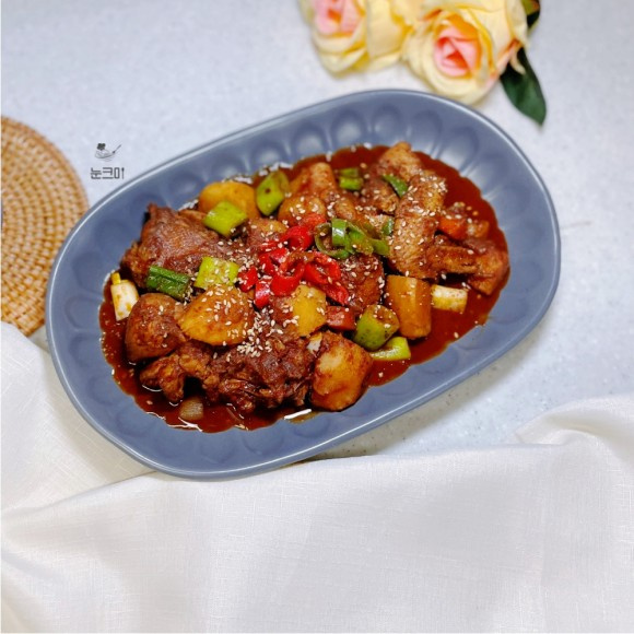 매콤한 음식이 생각날 때 최고의 선택! 집에서 푸짐하고 맛있는 닭볶음탕을 즐겨보세요. 백종원 님의 레시피를 참고하여 양을 조절하고, 깊고 얼큰한 국물과 부드러운 닭고기의 조화를 살린 레시피입니다. 밥도둑이 따로 없답니다!