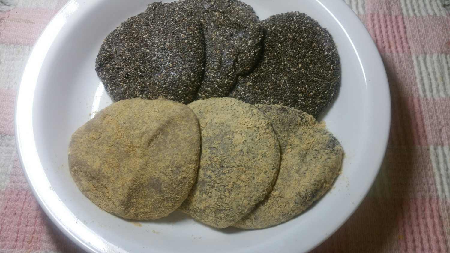 만들어 놓은 찹쌀떡을 준비된 볶은 치아씨드와 고소한 콩고물을 섞은 고물에 굴려가며 꼼꼼하게 묻혀주세요. 떡의 겉면에 고물이 골고루 묻도록 합니다.