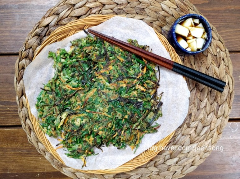 봄철 별미, 부추와 미나리를 듬뿍 넣어 얇고 바삭하게 즐기는 밀가루 없는 부침개 레시피