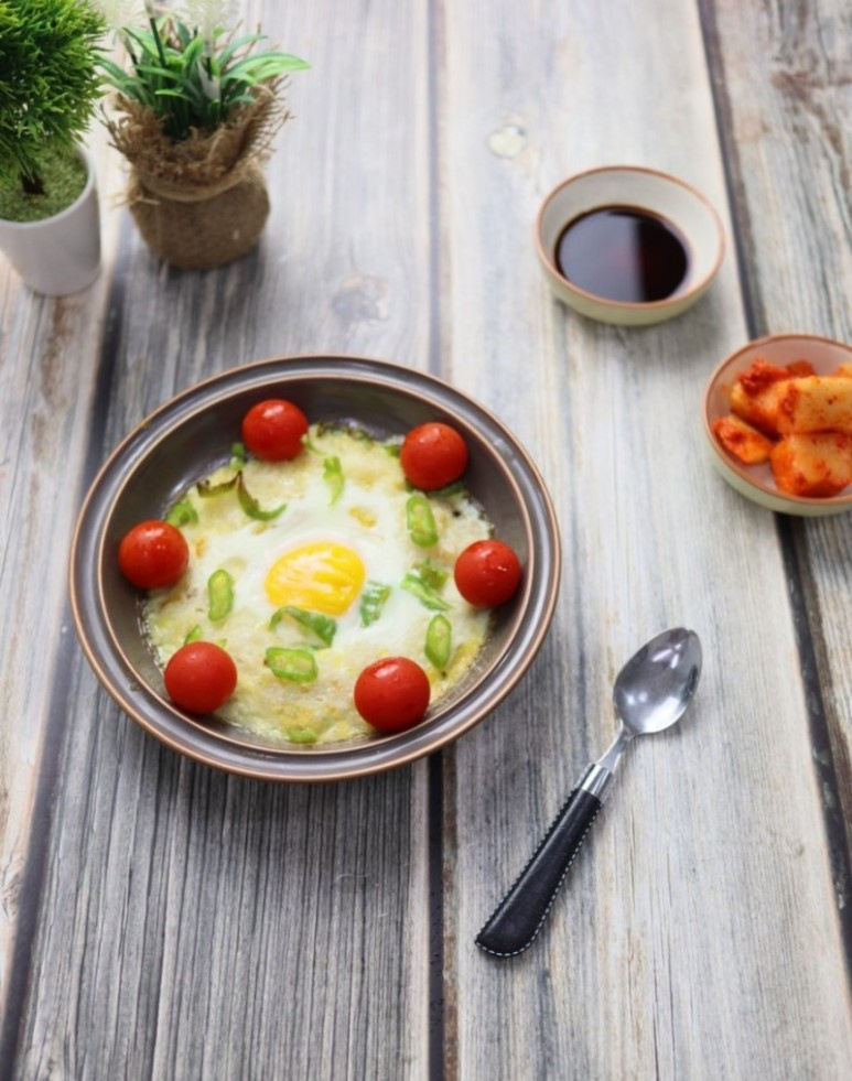 5. 완성 및 플레이팅: 조리가 끝나면 그릇을 조심스럽게 꺼냅니다. 밥 위에 보기 좋게 익은 계란 프라이를 얹어 완성합니다. 취향에 따라 간장, 참기름 등을 살짝 둘러 비벼 드시면 더욱 맛있습니다.