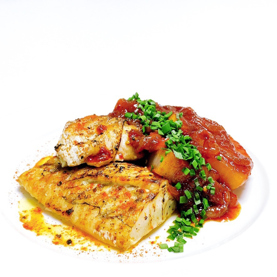 13. 냄비에서 잘 졸여진 가을무 콜라 조림을 농어구이 옆에 예쁘게 담아냅니다. 마지막으로 레몬즙을 살짝 뿌리고, 신선한 부추를 곁들여 플레이팅합니다. 취향에 따라 다른 채소를 활용하여 멋진 플레이팅을 완성해보세요. 영양 만점의 건강한 다이어트 식단, 농어 순살구이와 가을무 콜라 조림이 완성되었습니다! 맛있으면서도 몸을 생각하는 이 특별한 레시피를 꼭 한번 도전해보세요!