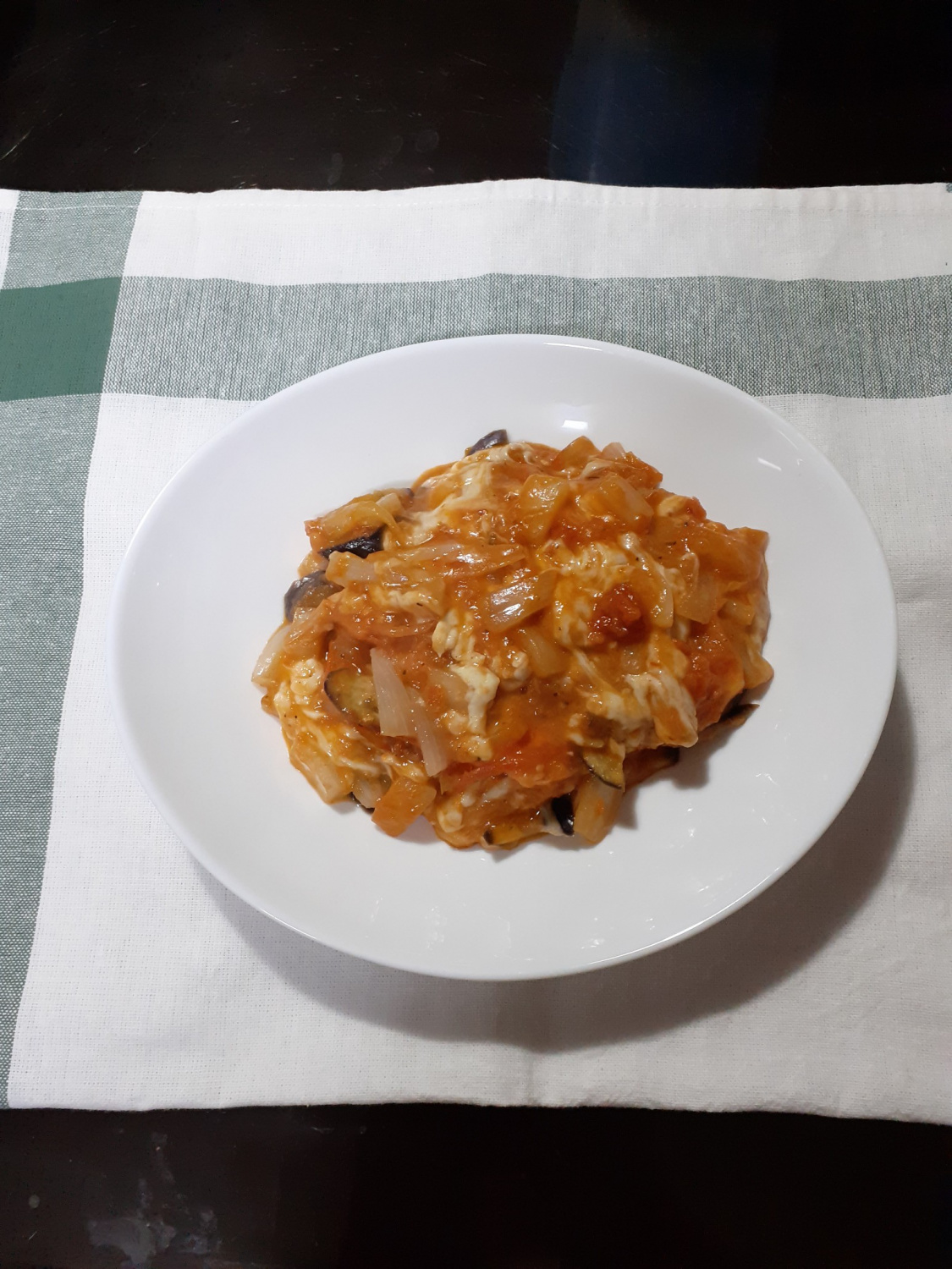 가지와 양파가 살짝 부드러워지면, 썰어둔 토마토를 넣고 소금을 골고루 뿌려주세요. 토마토의 자연스러운 단맛과 감칠맛이 요리의 풍미를 더해줍니다.