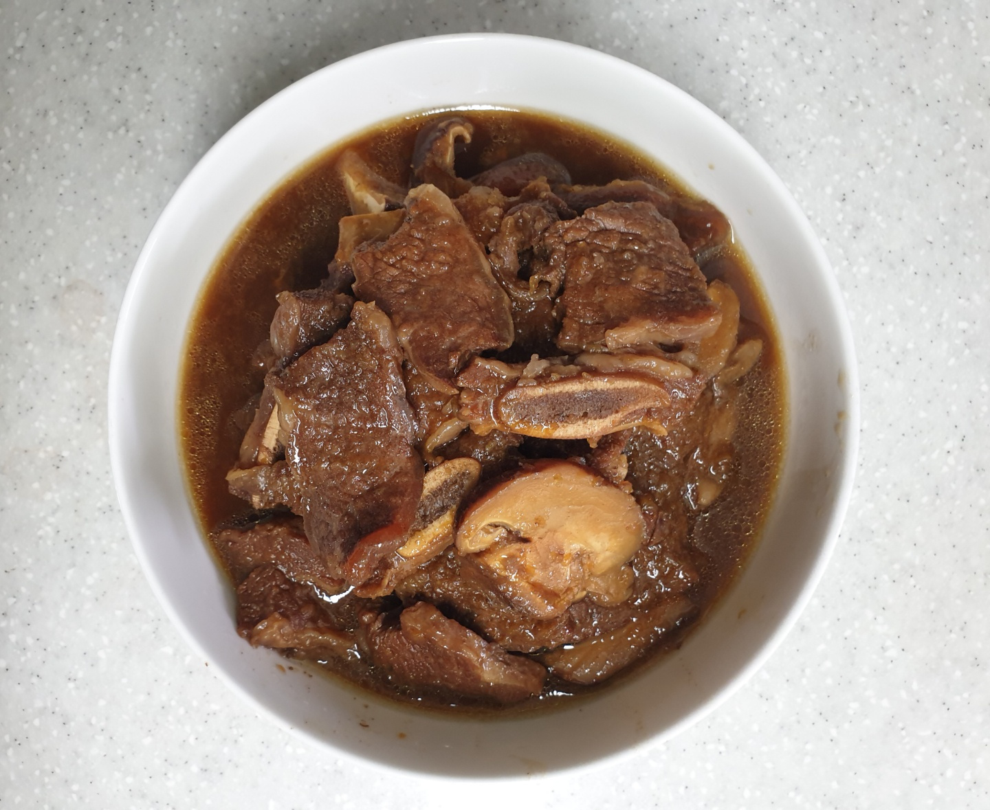 총 30~35분간 끓인 후, 불을 끄고 압력밥솥의 김을 완전히 빼줍니다. 김이 빠지면 뚜껑을 열고, 위에 뜬 기름기를 깔끔한 맛을 위해 걷어내 주세요. 마지막으로 간을 보고 싱거울 경우 진간장을 1~2 큰술 추가하고 5분 정도 더 졸여 간을 맞춰주세요. (기호에 따라 설탕이나 올리고당으로 단맛을 조절해도 좋습니다.)