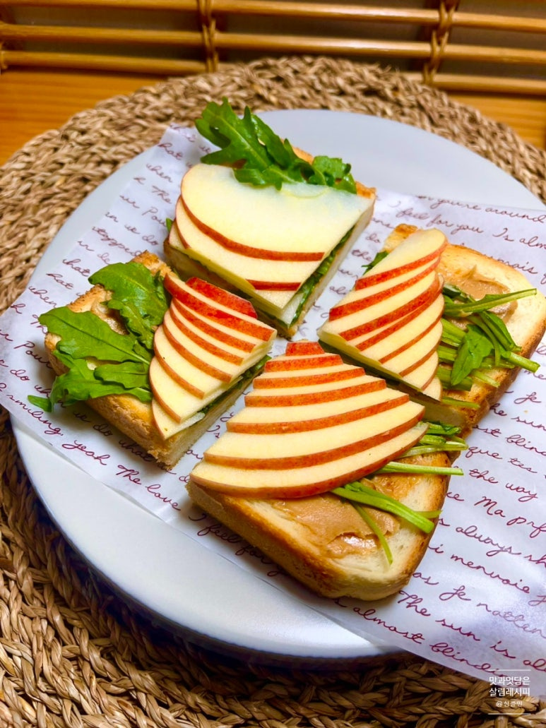 사과 루꼴라 오픈 샌드위치 만들기: 든든한 브런치 메뉴
