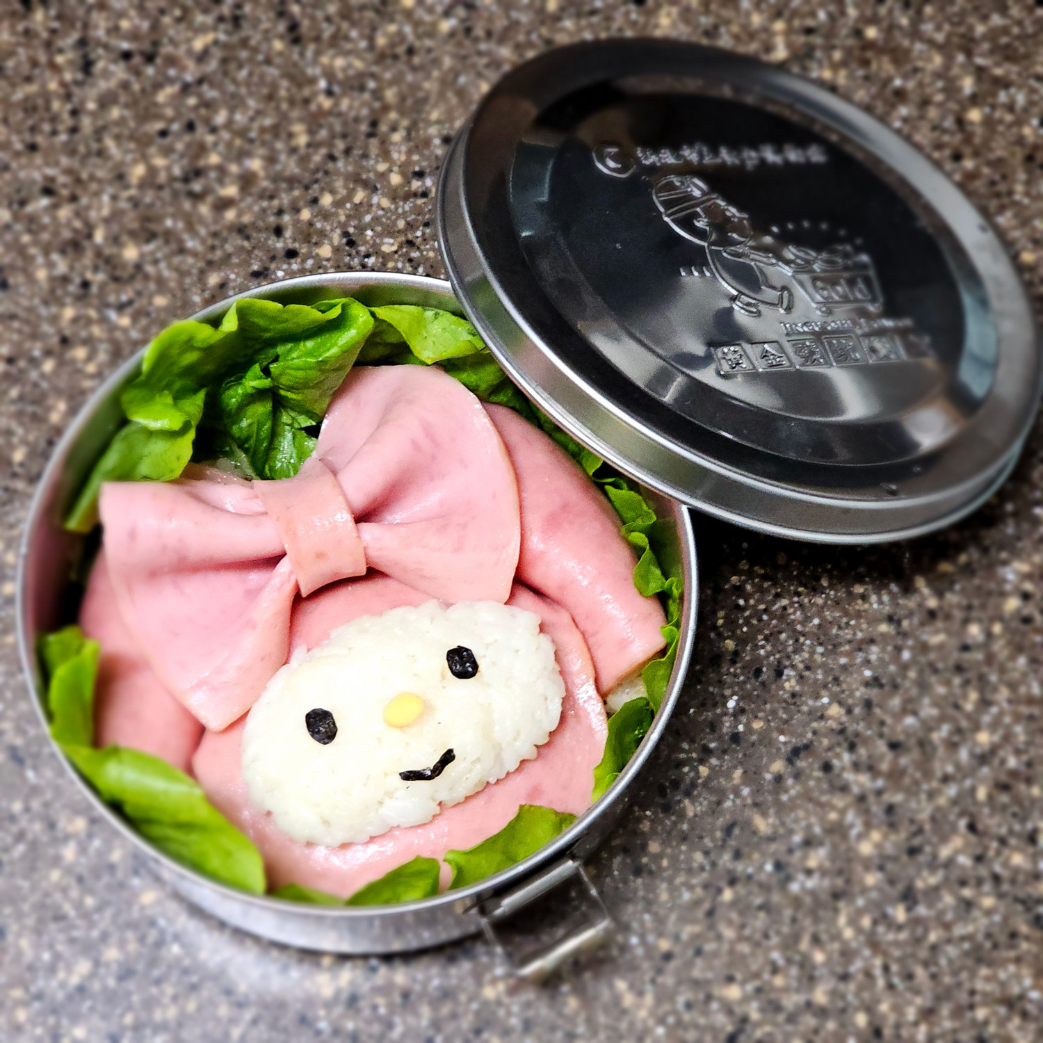 미리 구워둔 마이멜로디의 시그니처 리본 장식을 도시락 위에 예쁘게 올려주세요. 리본 하나로 도시락의 귀여움이 배가될 거예요.