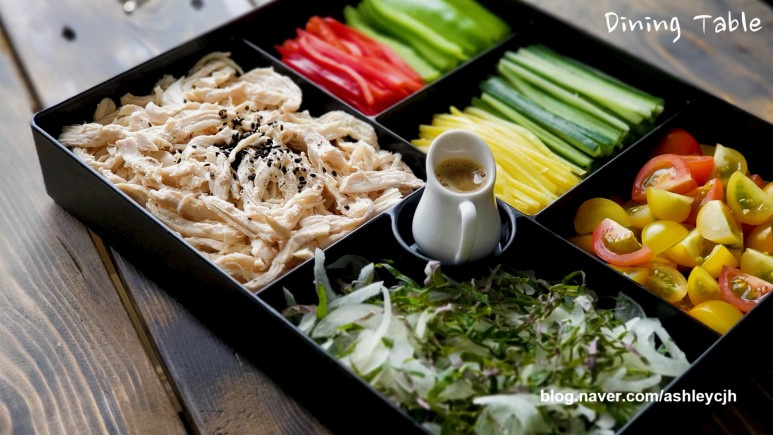 입맛 없을 때 딱! 신선한 채소와 닭가슴살로 만드는 건강하고 산뜻한 도시락 닭냉채
