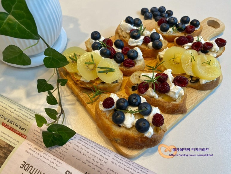상큼한 그릭 요거트와 제철 과일 오픈 샌드위치