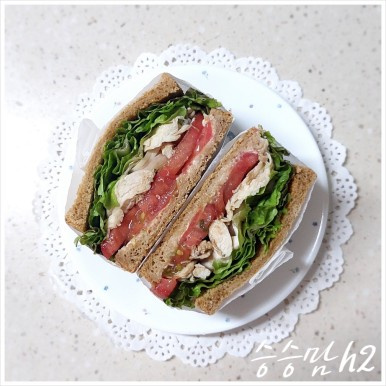 윤기가 자르르 흐르는 허니갈릭 소스에 버무린 촉촉한 닭고기와 신선한 토마토, 아삭한 상추가 어우러진 맛있는 샌드위치 레시피입니다. 브런치나 간식으로 즐기기 좋아요.
