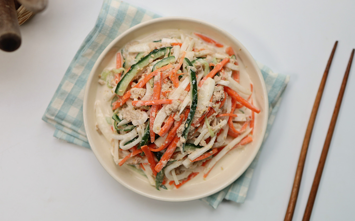 매번 똑같은 무생채가 지겨우셨다면 주목해주세요! 고춧가루 대신 고소한 참치를 넣어 톡톡 터지는 식감과 부드러운 풍미를 더한 ‘참치마요 무생채’를 소개합니다. 밥도둑 반찬으로 손색없고, 만들기도 간편하여 누구나 쉽게 도전할 수 있어요. 특별한 날은 물론, 평범한 식탁에 즐거움을 더해보세요!
