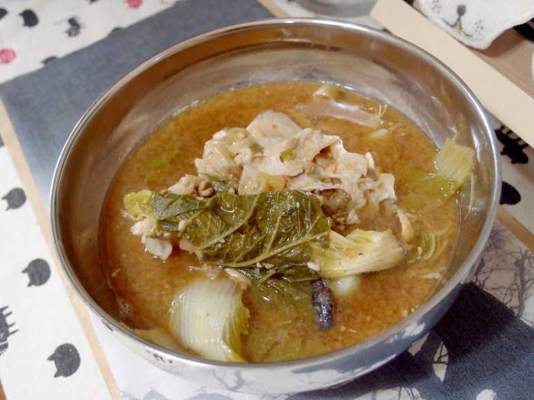 국물이 팔팔 끓어오르면, 텃밭에서 갓 따온 싱싱한 배춧잎을 준비해주세요. 야채의 맛을 살리기 위해 가급적 칼보다는 손으로 먹기 좋은 크기(뚝뚝 찢어지는 느낌)로 찢어서 넣어주시면 더욱 좋습니다.
