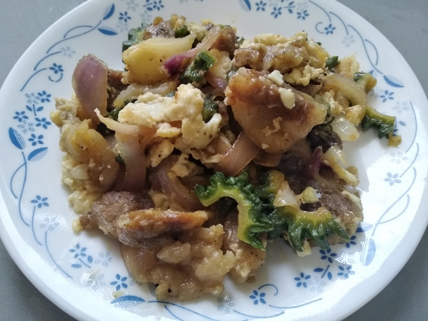 밥도둑! 건강 만점 여주 돼지고기 볶음 완성입니다. 맛있게 즐기세요!