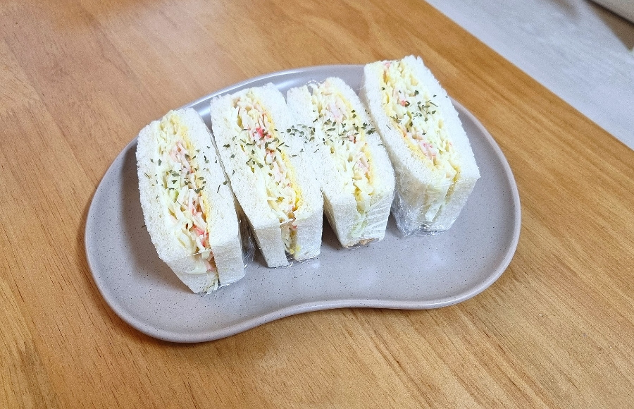 정말 간단하게 만들었지만 맛은 기대 이상인 양배추 샌드위치 완성입니다! 점심 식사로 차와 함께 곁들여 먹으니 정말 꿀맛이었어요. 취향에 따라 맛살 대신 햄이나 치즈를 추가해도 정말 맛있을 거예요. 여러분도 꼭 만들어 보세요!