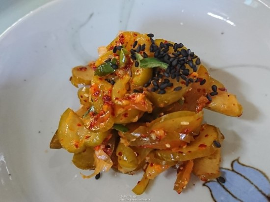 이렇게 하여 아삭하고 맛있는 오이지무침이 완성되었습니다. 바로 드셔도 좋고, 냉장고에 넣어두고 드시면 더욱 깊은 맛을 느낄 수 있습니다.
