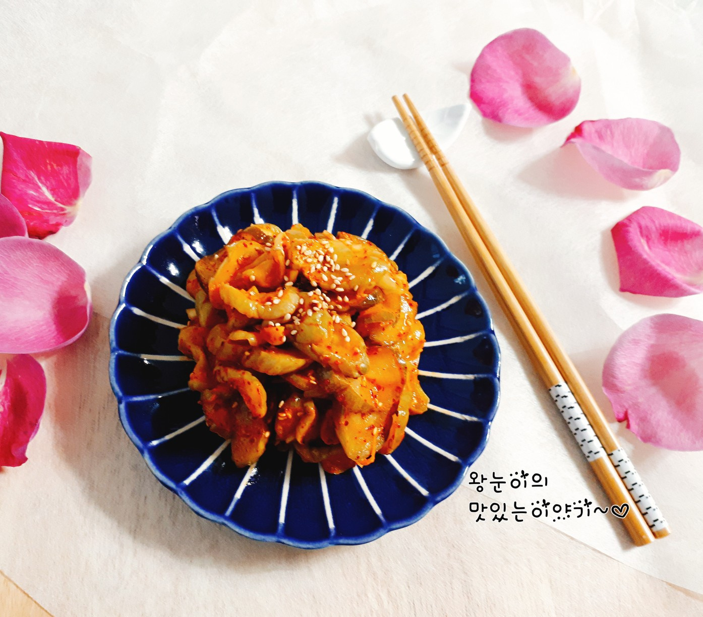 자, 이제 꼬들꼬들 맛있는 식감이 살아있는 오이지 무침이 완성되었습니다! 밥상에 올라오면 젓가락이 멈추지 않는 훌륭한 밑반찬이 될 거예요.