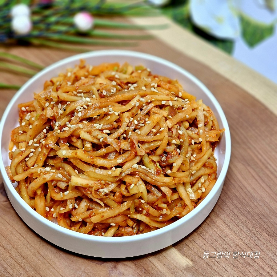 아삭아삭하고 맛있는 콜라비 생채 무침이 완성되었습니다! 신선한 콜라비의 매력을 한껏 느낄 수 있는 최고의 반찬입니다.