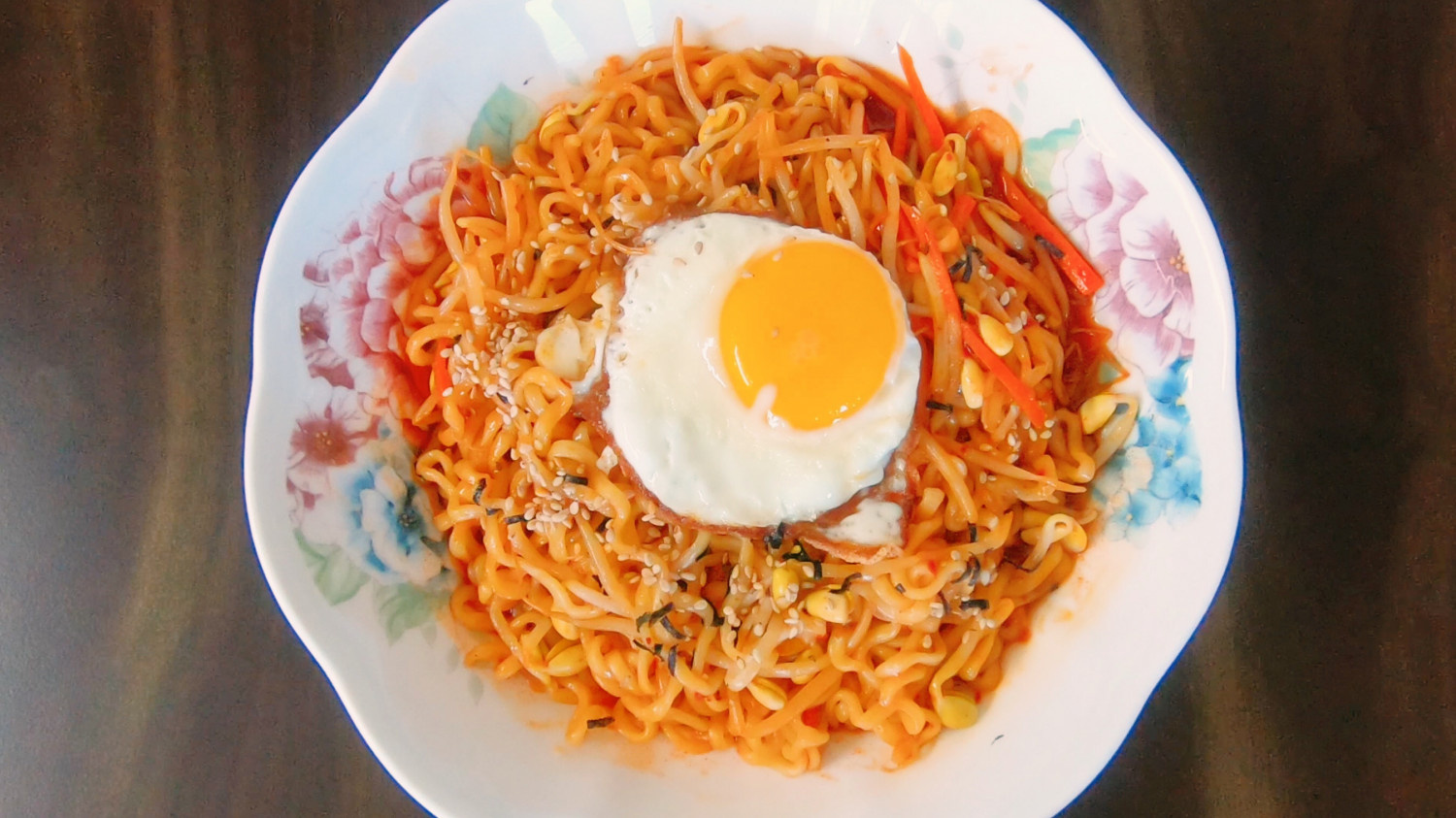 아삭한 콩나물무침 곁들여 즐기는 핵불닭볶음면