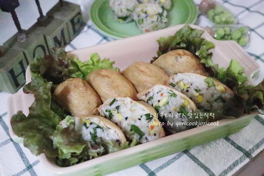 아삭한 식감과 칼칼한 매콤함이 매력적인 콩나물 유부초밥 레시피