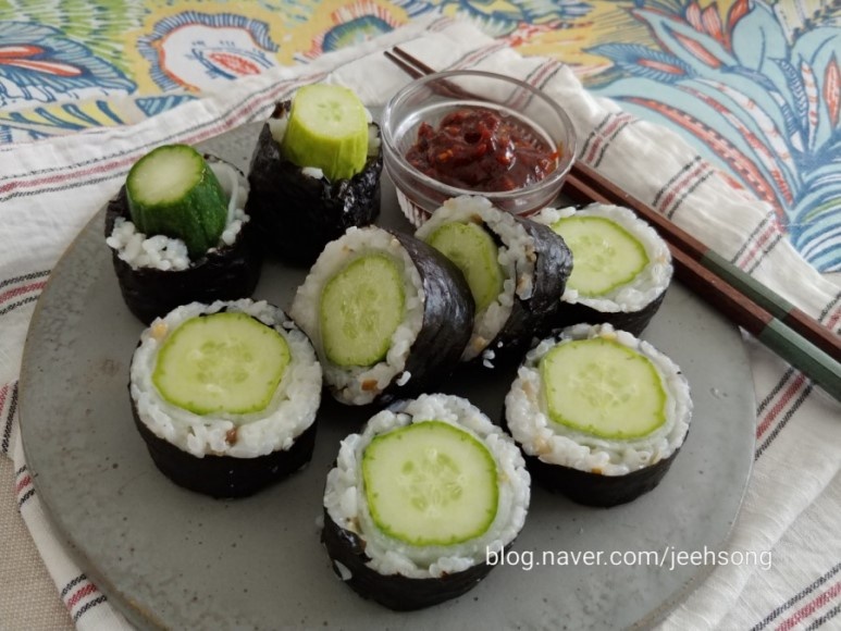 아삭함이 살아있는 통오이김밥 (쌈장 곁들임)