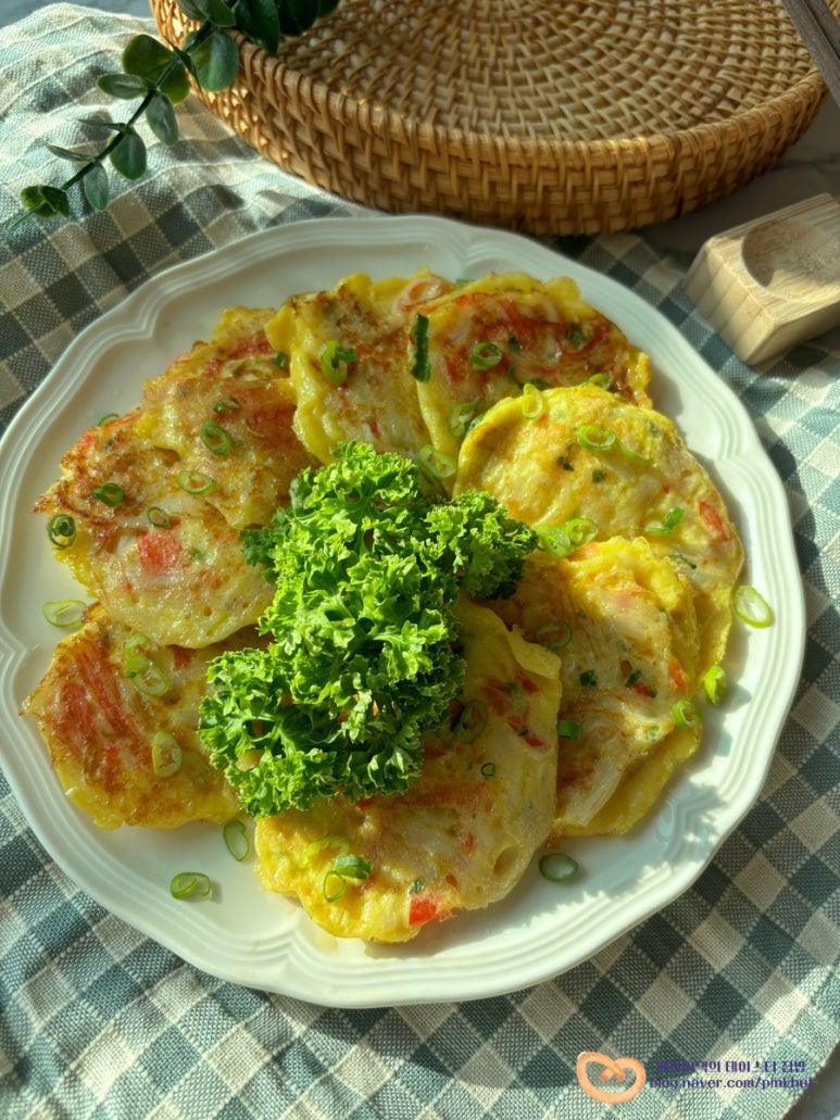 아이 간식으로 최고! 부드럽고 고소한 크래미 계란전 만들기 (간단 동그랑땡 레시피)