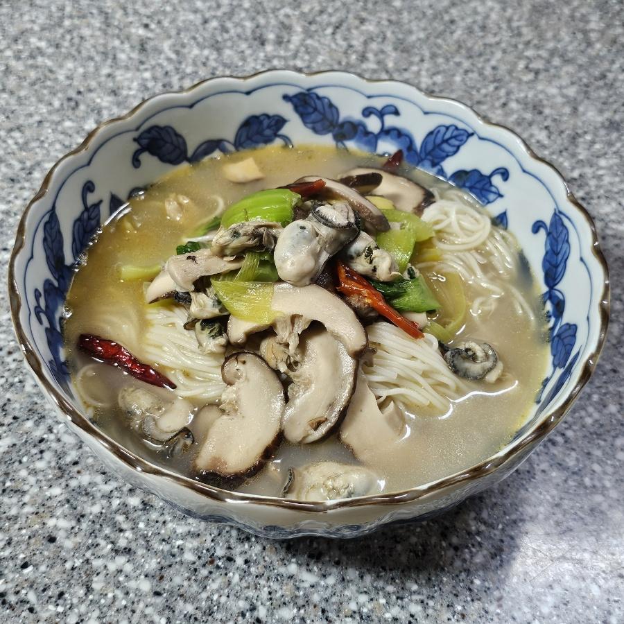 마지막으로, 따뜻하게 끓여진 굴 국물을 준비된 국수 위에 넉넉하게 부어줍니다. 굴과 채소에서 우러나온 깊고 시원한 국물이 면발과 어우러져 환상적인 맛을 선사할 것입니다. 국물의 진한 맛과 풍부한 향을 즐겨보세요.