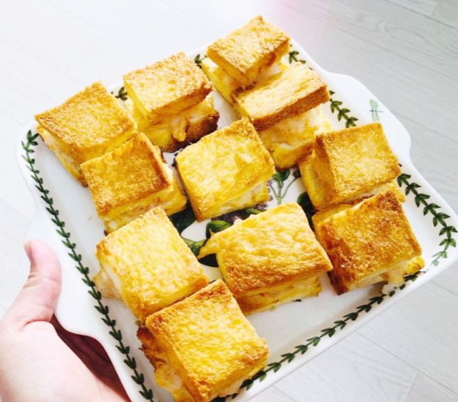 잘 구워진 멘보샤를 접시에 예쁘게 담아내기만 하면 완성입니다! 뜨거울 때 칠리소스를 곁들여 콕 찍어 먹으면, 겉바속촉의 환상적인 맛을 제대로 즐기실 수 있을 거예요. 맛있게 드세요!
