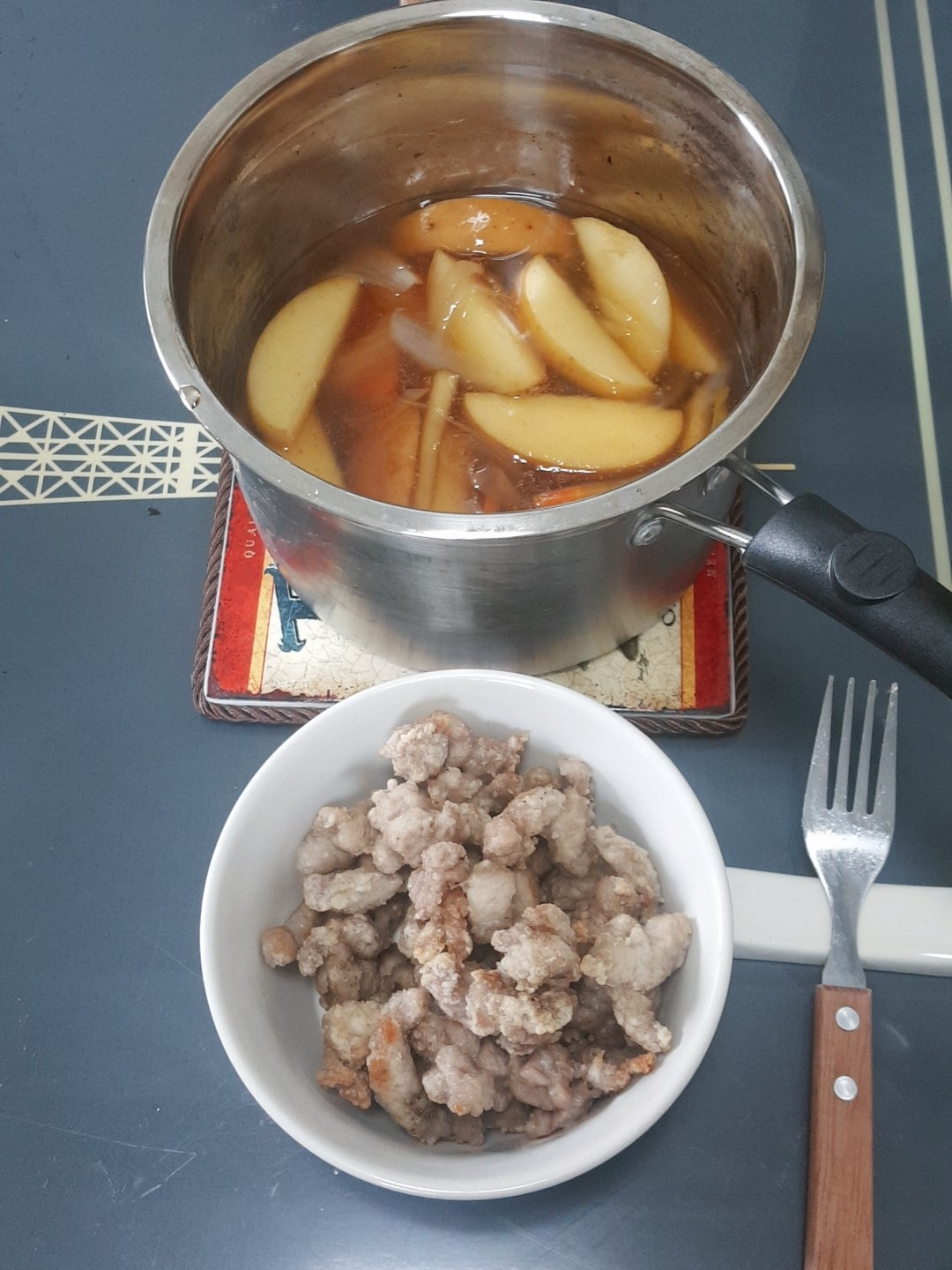 카레 만들고 남은 돼지고기 안심으로, 에어프라이어에 구워 간편하고 맛있는 사과 탕수육 만들기!