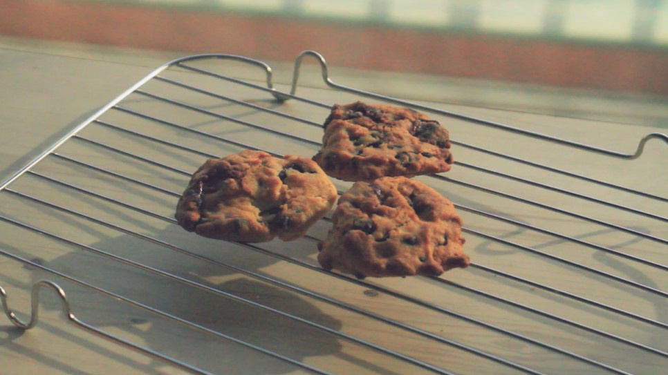 구워진 쿠키는 에어프라이어나 오븐에서 꺼내 식힘망 위에서 완전히 식혀주세요. 뜨거울 때는 부드럽지만, 충분히 식혀야 오독오독하고 바삭한 식감을 제대로 즐기실 수 있습니다!