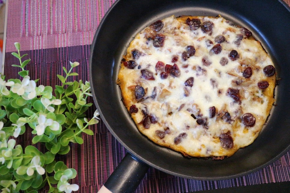 이제 새콤달콤한 맛을 더해줄 크랜베리를 뿌려줍니다. 말린 과일은 단호박 피자에 예상외로 잘 어울리는데, 특히 크랜베리의 상큼함이 느끼함을 잡아주어 ‘신의 한 수’가 된답니다. 만약 크랜베리가 없다면 건포도나 말린 자두 등 다른 건과일을 활용해도 맛있게 즐길 수 있습니다.