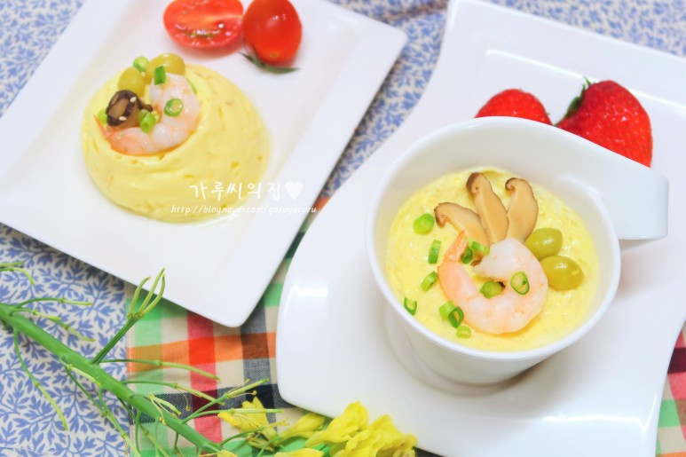 잘 익은 계란찜 위에 삶은 새우, 은행, 슬라이스한 표고버섯, 송송 썬 실파 등 취향에 맞는 고명을 올려주면 더욱 보기 좋고 맛있는 계란찜을 즐길 수 있습니다. 달걀찜만으로도 충분히 맛있지만, 고명을 추가하면 더욱 풍성한 맛을 느낄 수 있어요. 맛있게 드세요!